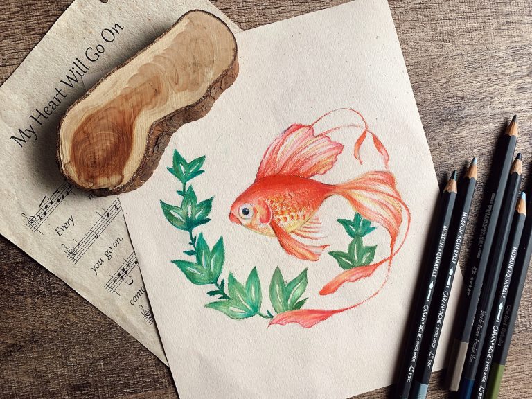 日式復古風金魚缸:高雄油性色鉛筆,初階班團體課程