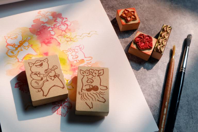 《用水彩蓋印章》好想去海邊~小豬公益印章組