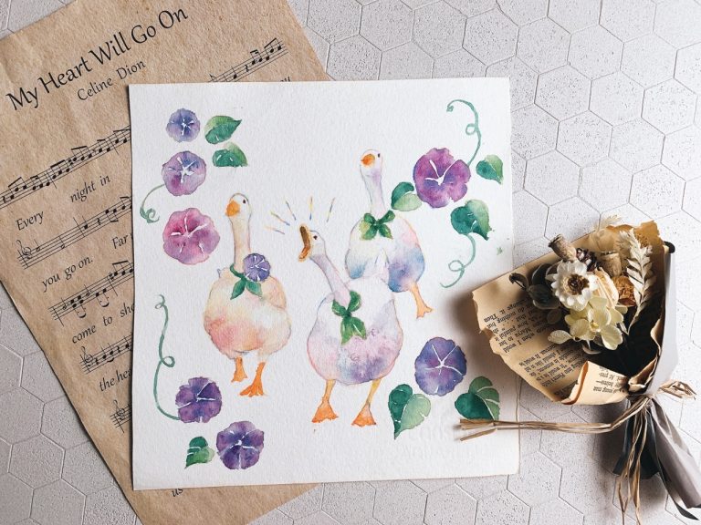 - 學習運用水彩獨特的效果,襯托出鴨子夢幻的羽毛質感。